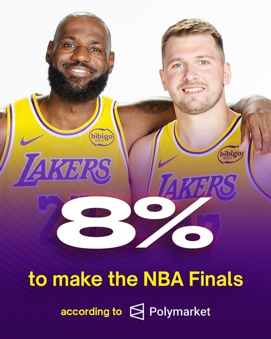 10月18日讯 体育预测市场平台PolymarketSport晒出数据,新赛季湖人进总决赛的概率为8%,赔率为+1200(投注100、若中合计得到1300)。
