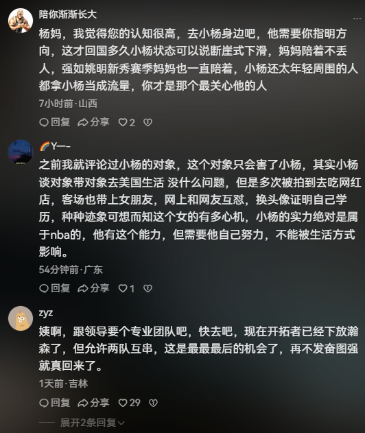 此前就有许多球迷纷纷涌入杨瀚森妈妈抖音评论区给杨瀚森妈妈提建议。