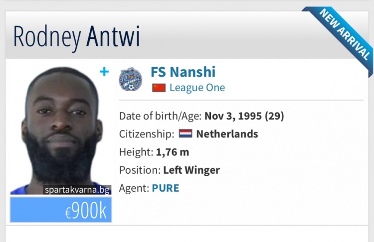 荷兰/加纳籍球员罗德尼-安特维(Rodney Antwi)加盟佛山南狮。安特维今年29岁,司职边锋。出自荷兰乌德勒支青训,后曾在保加利亚、埃及、乌克兰、挪威、马耳他等多个国家踢球。上赛季效力于塞尔维亚超级联赛的新帕扎尔队,为球队出场33次,打进8球。