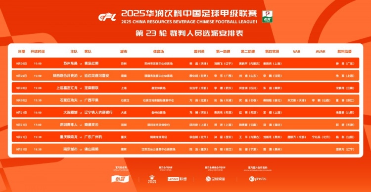 9月20日讯 中甲联赛官方公布联赛第23轮裁判选派,唐顺齐将担任重庆铜梁龙VS广东广州豹的VAR裁判。