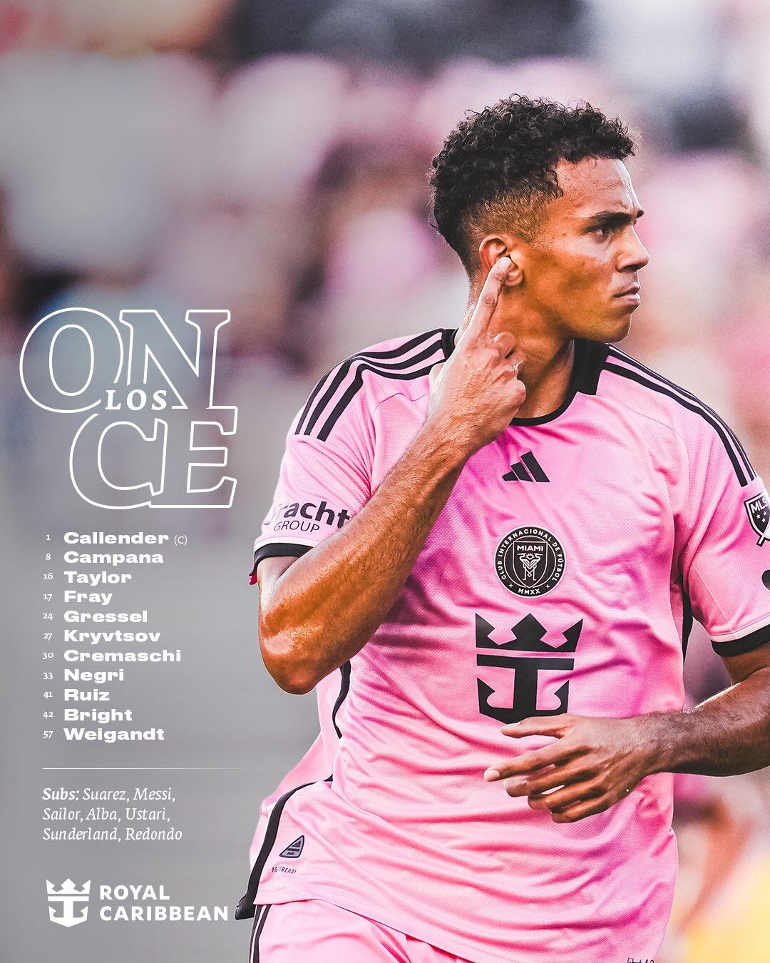 迈阿密国际首发:1-卡伦德、17-伊恩-弗雷、24-格雷塞尔、27-克里夫索夫、33-内格里、42-杨尼克-布莱特、57-韦甘特、30-克雷马斯基、41-鲁伊斯、8-坎帕纳、16-泰勒