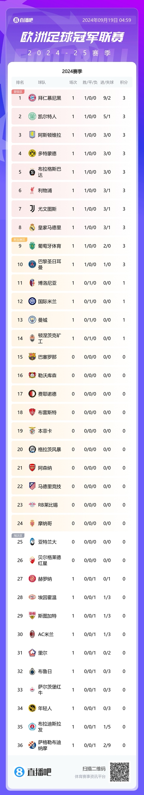 足坛汇09月19日讯 欧冠首轮第二比赛日结束,曼城0-0战平国米,多特3-0布鲁日,巴黎1-0赫罗纳,凯尔特人5-1大胜布拉迪斯拉发