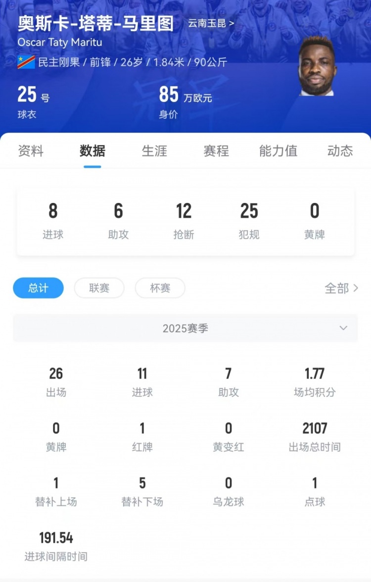 本赛季截至目前,奥斯卡一共出场26场,打进11球,送出7次助攻。