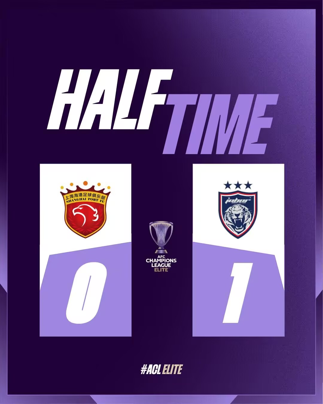 足坛汇9月18日讯 北京时间9月18日20:00,亚冠精英联赛首轮上海海港迎战柔佛新山的比赛,上半场海港0射正,阿里夫贴地斩破门,半场结束,海港0-1柔佛新山。