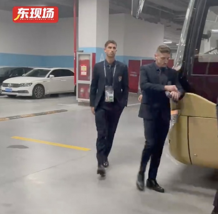 作为客队的柔佛新山,全队统一身着黑色西装乘坐大巴车来到浦东足球场。今晚海港主场对阵柔佛新山的这场亚冠精英联赛首轮比赛,将在北京时间20点正式开球。
