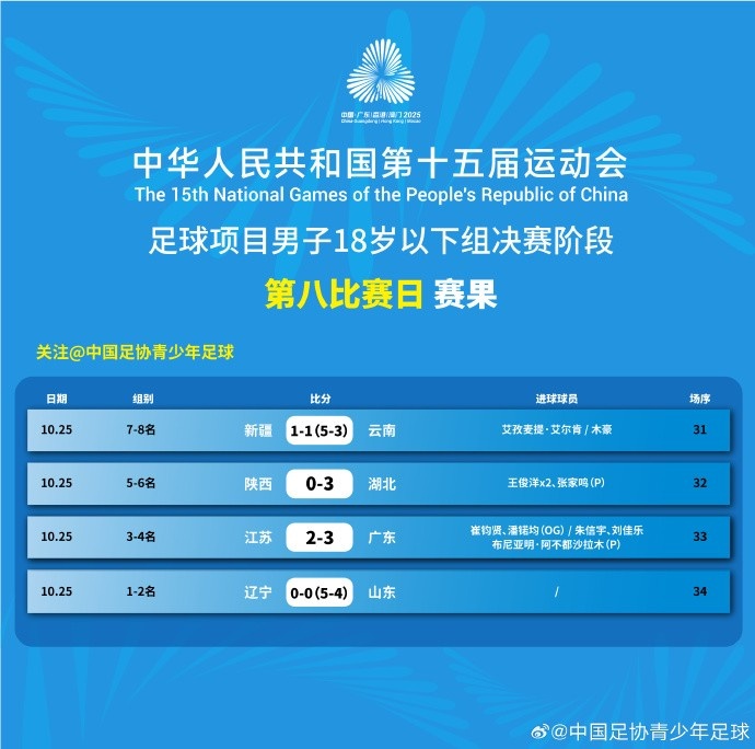 10月26日讯 中华人民共和国第十五届运动会足球项目男子18岁以下组决赛阶段在深圳市顺利结束,辽宁队夺得冠军。