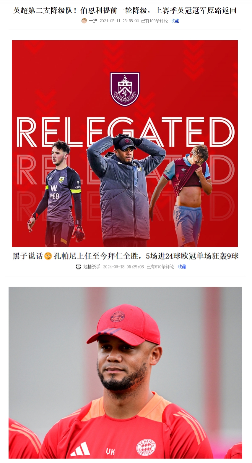 而就在4个月前,孔帕尼正经历自己执教生涯的最低谷,他执教的伯恩利5胜9平24负从英超降级,将参加新赛季的英冠。