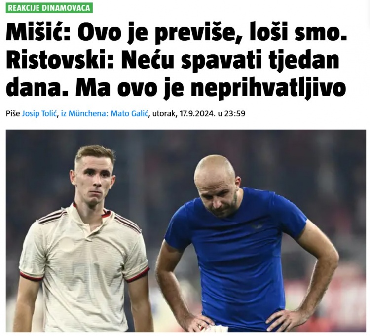萨格勒布右后卫利斯托夫斯基说道:“首先,我想向所有球迷道歉,希望他们能原谅我们,并继续和我们站在一起。在这样一场失利后接受采访并不容易,我们必须意识到,我们不仅代表萨格勒布迪纳摩,也代表克罗地亚足球,我们必须走出困境,并对此深信不疑。”