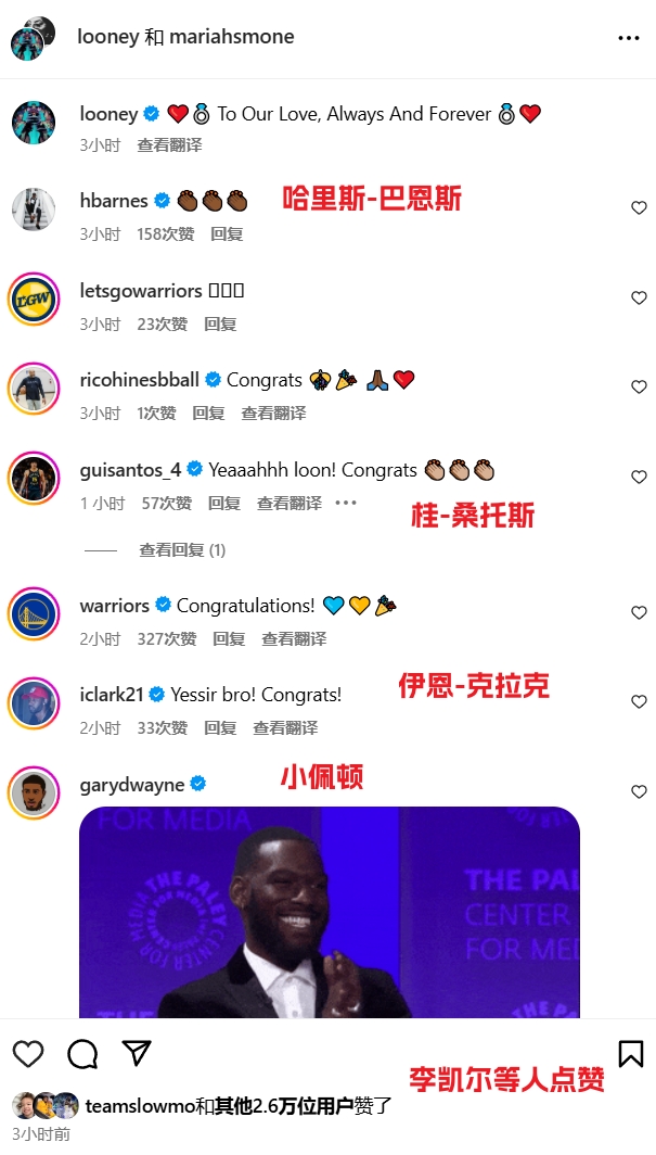 卢尼的一众队友和前队友也都纷纷现身评论区送上了祝福!