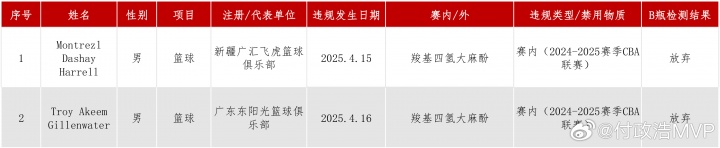 足坛汇09月28日讯 今年6月,中国反兴奋剂中心公示,哈雷尔和吉伦沃特在(2024-25)赛季期间出现违规情况,两人当时分别效力于新疆和广东。近日,澳洲NBL联赛阿德莱德36人官宣和哈雷尔解约,而吉伦沃特则是签约中国台湾联赛球队富邦勇士。
