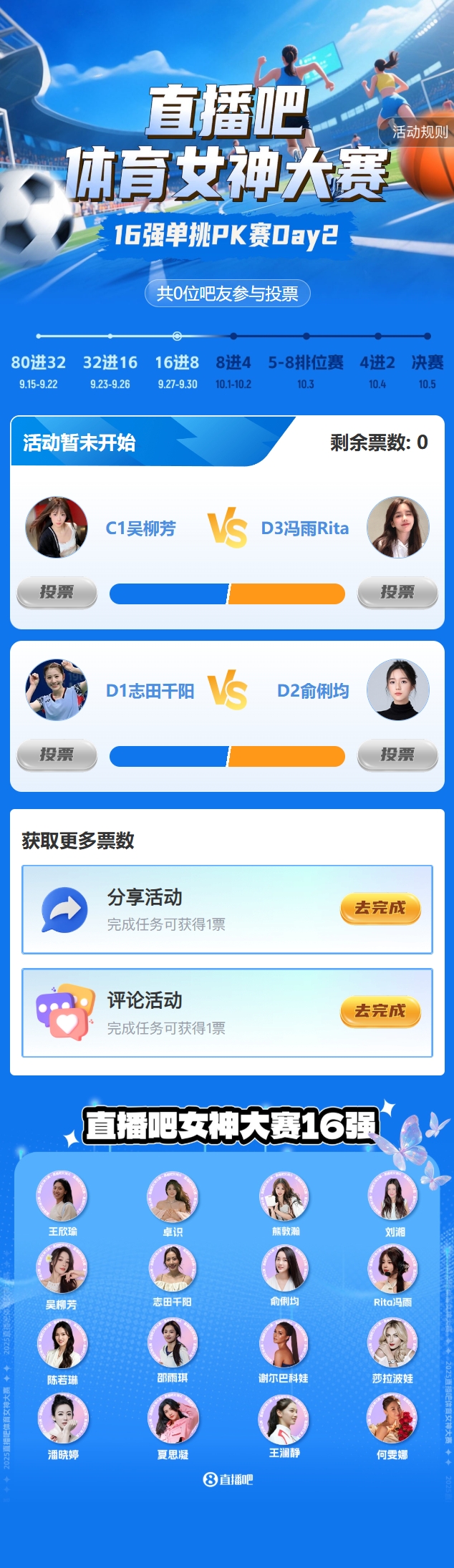 2025年『足坛汇体育女神大赛』昨日进入16强单挑PK赛阶段,淘汰赛Day1结果如下: