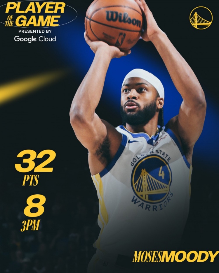 赛后勇士评选出本场最佳球员,砍下生涯新高的穆迪当选!