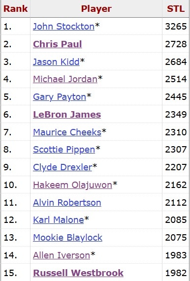 目前,威少已经送出2次抢断,他的常规赛生涯总抢断次数超越阿伦·艾弗森(1983),上升至NBA历史第14位,前一位是穆奇·布雷洛克。