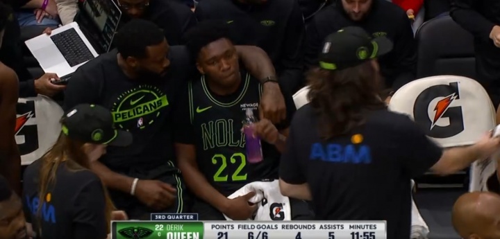 此役,鹈鹕最多时落后25分,但是第三节在新秀德里克·奎因的带领下反超了比分。