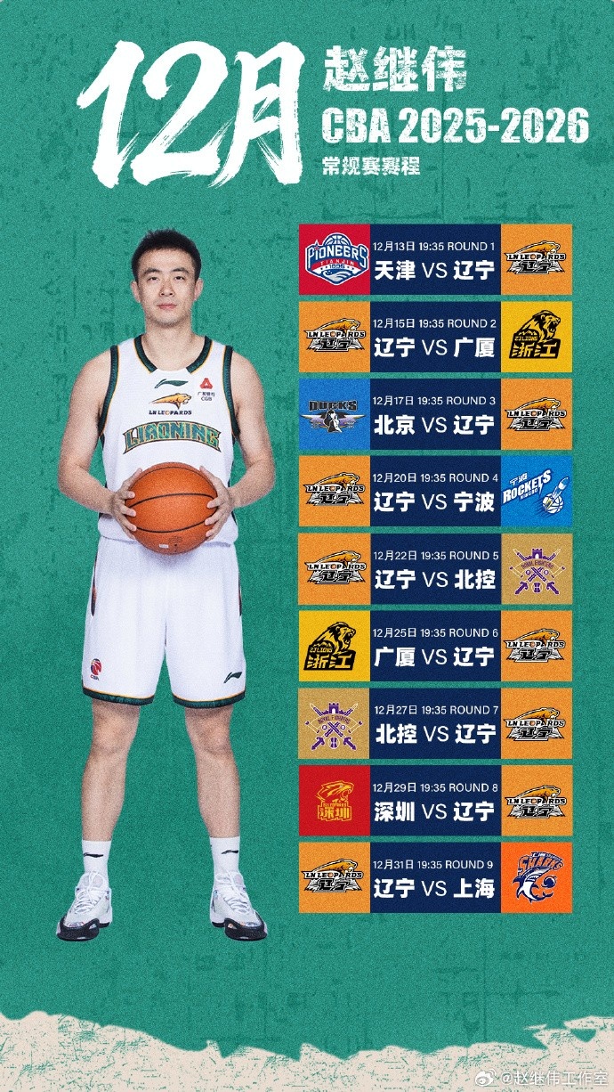 “终于迎来了CBA 2025-2026赛季,12月份赛程来咯,目前赵Boss仍在积极康复中,比预想中顺利,期待早日回到赛场,也请大家继续为辽宁队加油!新赛季,干就完了。”赵继伟工作室官博如是写道。