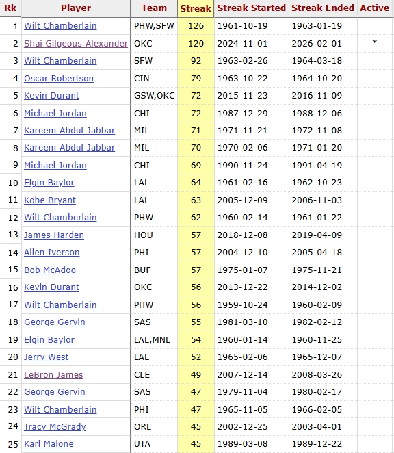 这样,亚历山大已经拿到20分(22中8),连续121场拿到20+,距离历史纪录只差5场!