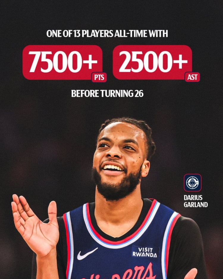 快船官推写道:DG(加兰)在上周满26岁之前,已经砍下7674分和2738次助攻,26岁之前7500+得分2500+助攻,历史仅有13人做到。