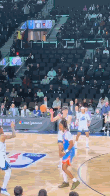 他来了!全明星新秀赛杨瀚森替补登场 上来就对位克林根!2026-02-14