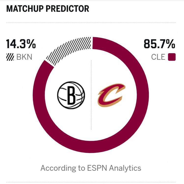 ESPN对本场胜率进行了预测,主队骑士胜率高达85.7%,篮网则是14.3%。