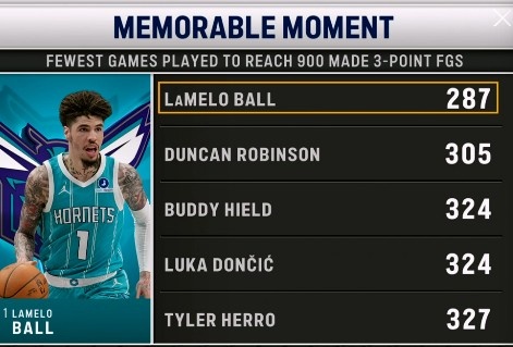 转播方晒出一组数据,NBA历史上投进900记三分所用场数最少的球员榜单如下: