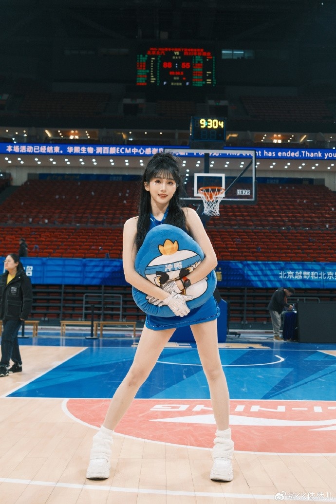 3月21日讯 北京男篮主场啦啦队队长@KK依然儿晒出一组个人照并写道:“上上场的库存。”