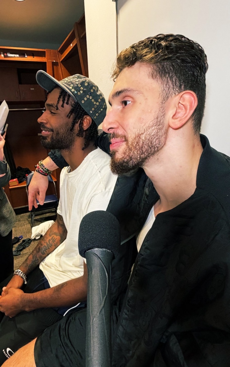 氛围不错!申京在更衣室搂着伊森接受采访 后者满脸笑容2026-03-30