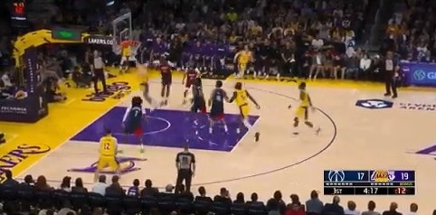 詹姆斯突破倒地左手有些不舒服 起来跟裁判示意被打手了2026-03-31