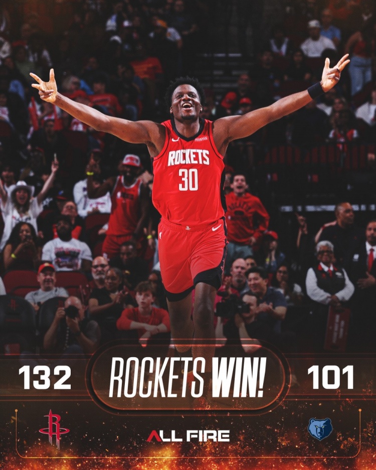 4月13日讯 NBA常规赛收官战,火箭132-101轻取灰熊。
