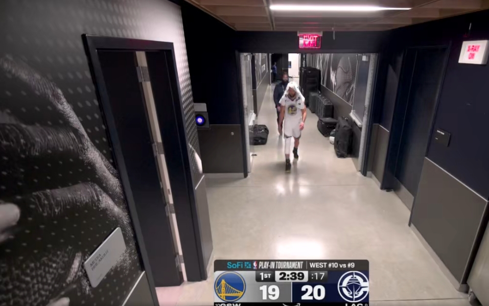 首节还剩2分多钟时,勇士球星斯蒂芬·库里走回更衣室,没有队医陪同。
