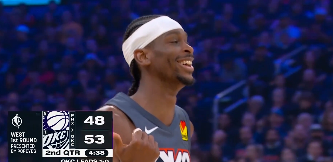 NBA季后赛快讯》二当家Jalen Williams半场19分 雷霆上半场领先太阳8分2026-04-23