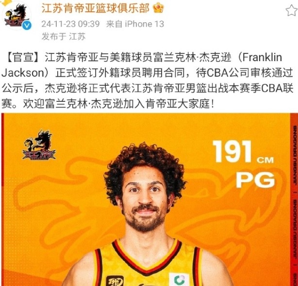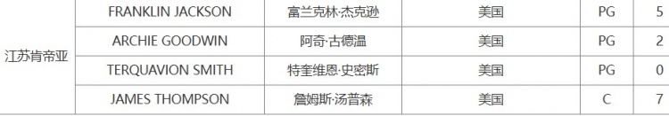 其中,江苏肯帝亚注册外援富兰克林-杰克逊,目前是四外援配置。