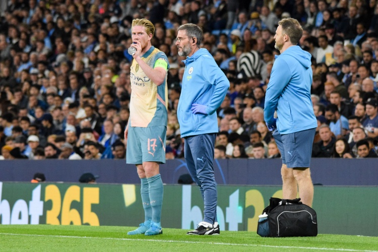 足坛汇9月20日讯 本周中的欧冠,曼城0-0战平国米,德布劳内半场休息就被换下,疑似伤退。