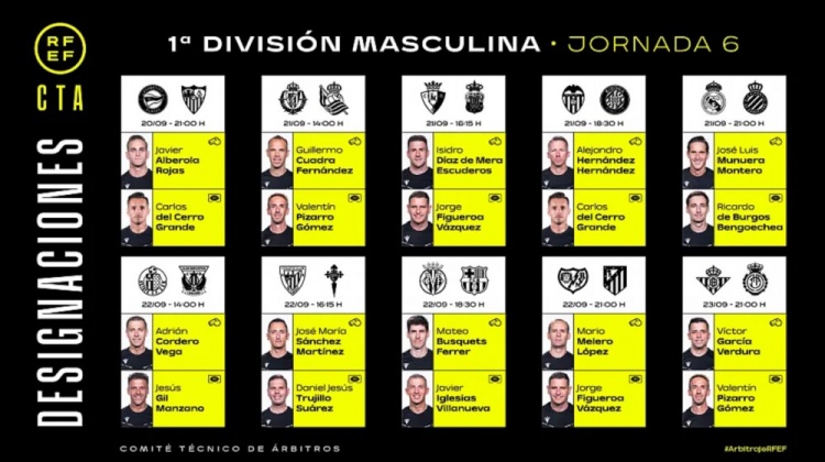 足坛汇9月19日讯 本周末,西甲联赛第6轮将拉开大幕,西班牙足协官方公布了本轮比赛的裁判安排,蒙特罗主裁皇马主场迎战西班牙人,费雷尔执法巴萨客战黄潜。