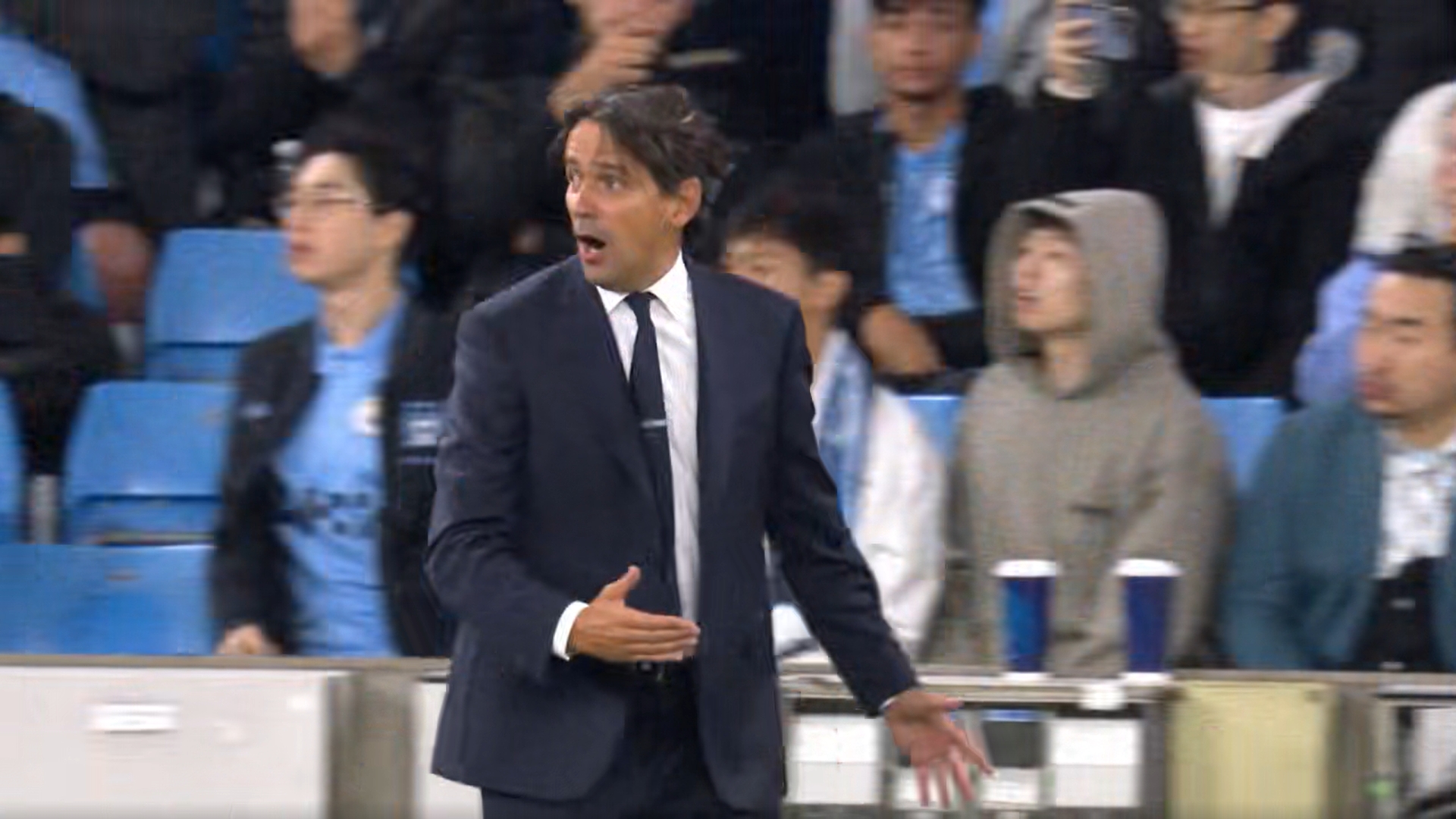 曼城vs国米第52分钟,国米获得良机,达米安没射门,脚后跟回做被格拉利什拿到球。小因扎吉看到球队获得良机先是跟着一阵小跑,但在看到没完成射门后暴怒大喊挥手,气得头发都凌乱了。