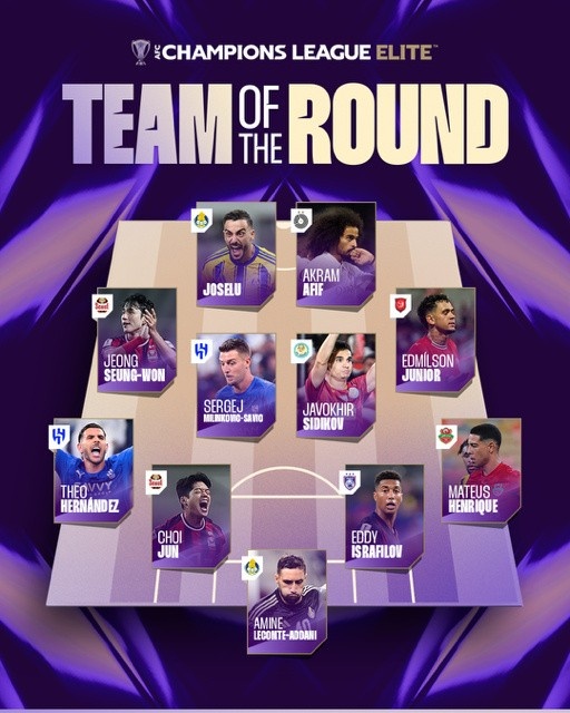 10月6日讯 亚冠官方公布亚冠精英联赛第二轮最佳阵容,何塞卢、特奥、米林科维奇领衔,中超无人入选。