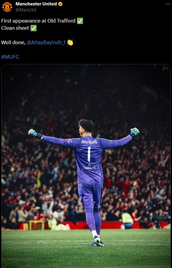 本场比赛,巴因德尔也没有受到对手太多的考验,顺利实现零封,赛后曼联官推写道:“第一次在老特拉福德登场✅,零封对手✅,干得好,巴因德尔!”