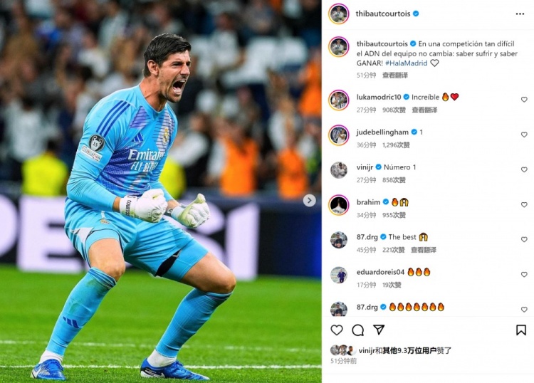 赛后,库尔图瓦在社媒写道:在如此艰难的比赛中,球队的DNA没变。我们知道如何面对困难,也知道如何取胜。