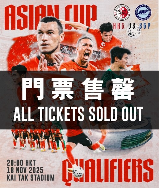 11月18日讯 今晚20:00,亚预赛第三阶段第5轮,中国香港代表队将坐镇主场迎战新加坡队比赛将在启德大球场进行,而本场比赛的门票早已在本月7日就全部售罄。