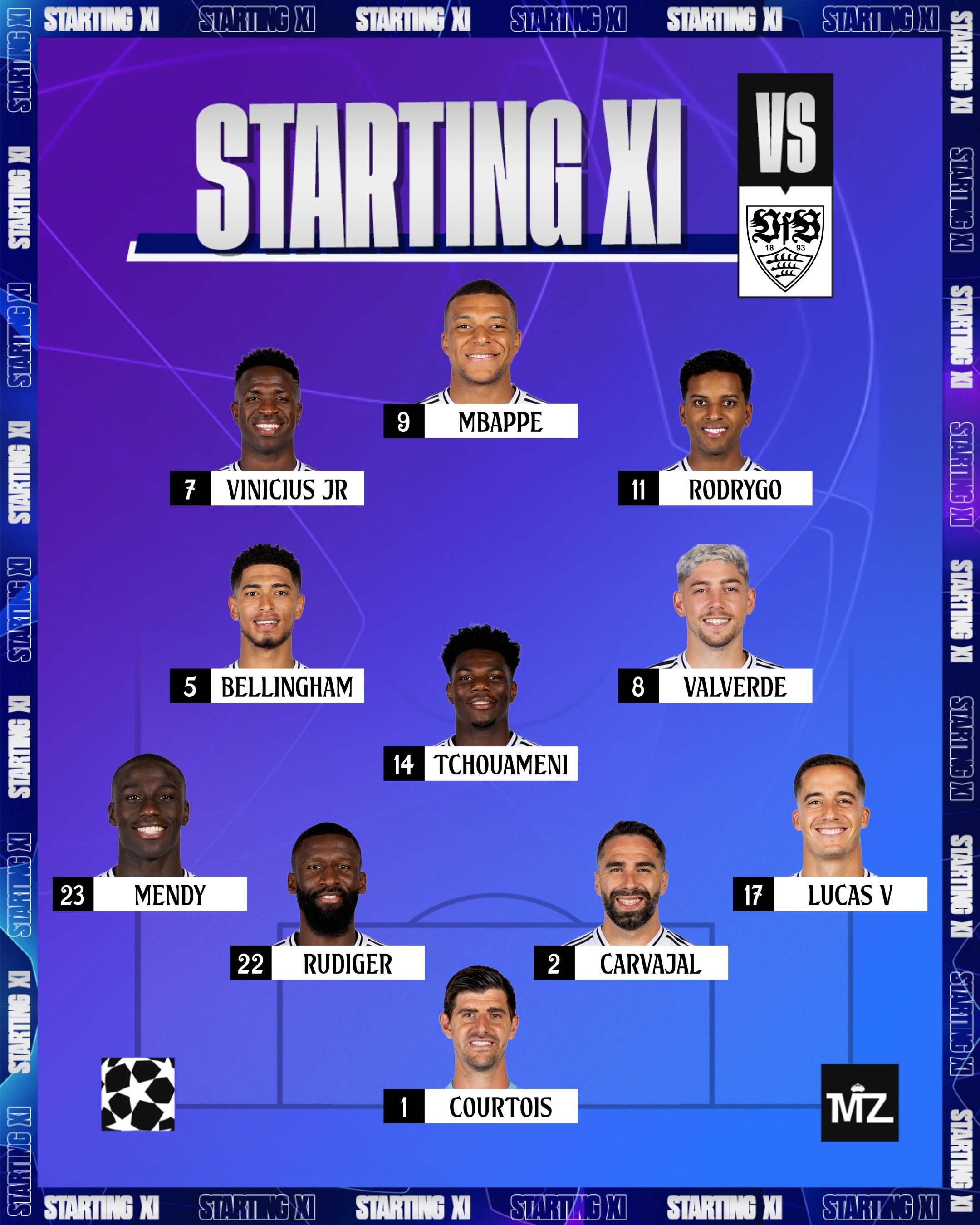 欧冠联赛阶段第1轮,皇马主场对阵斯图加特。赛前,皇马官方率先公布了本场的首发名单。