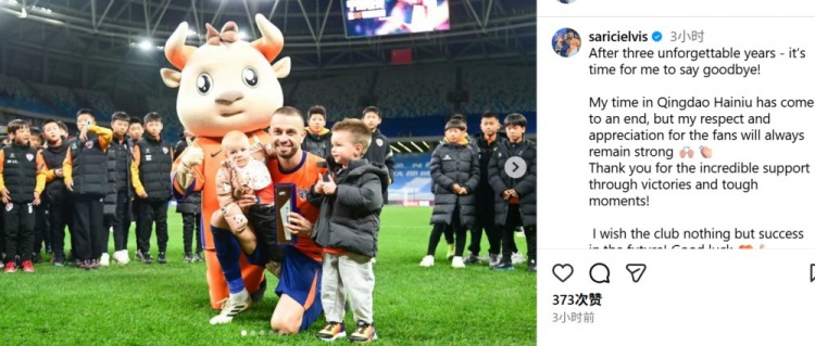 12月15日讯 今晚,萨里奇更新社媒,向自己效力了三年的青岛海牛告别。
