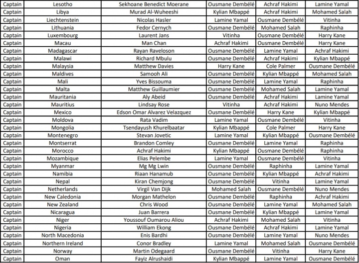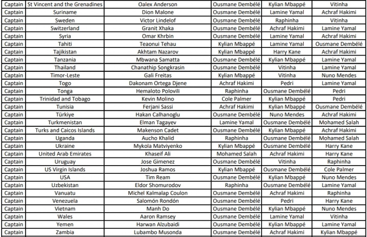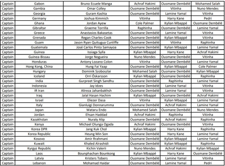 队长投票详情(文字顺序:国家/地区 投票人 1选 2选 3选)