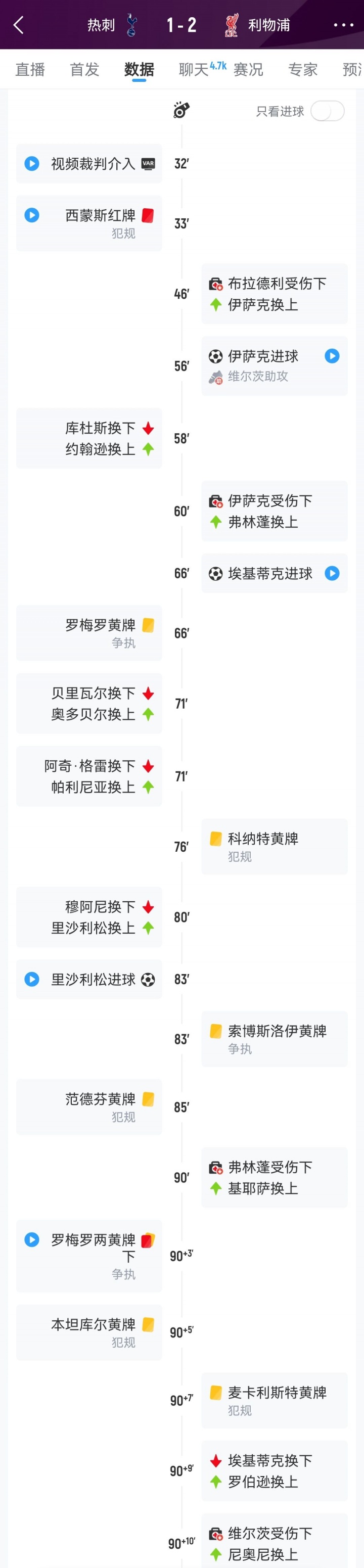 12月20日讯 英超第17轮, 利物浦客场2-1击败热刺,此役布拉德利、伊萨克均伤退。