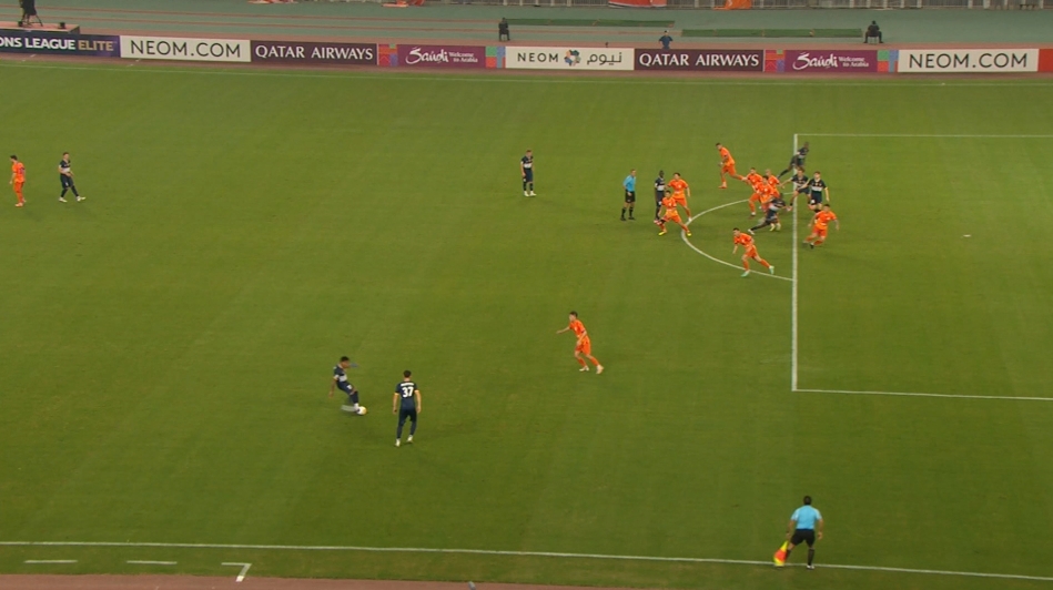 下半场比赛一次任意球防守中,泰山使用了造越位战术,全体防守球员位置前提,但石柯一人跑向了己方球门,导致战术失败,进攻球员全都处在了不越位的位置,好在中央海岸水手最后射门打偏。