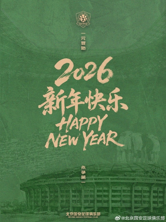 一元复始 永争第一 北京国安足球俱乐部祝您新年快乐!2026-01-01