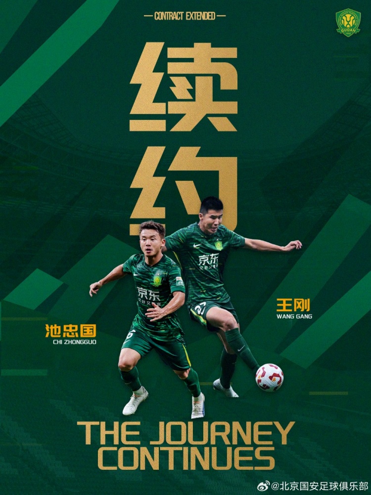 北京国安足球俱乐部近期与王刚、池忠国完成续约2026-01-14