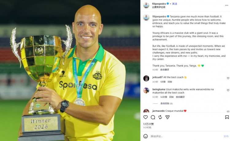 该博主写道:“葡萄牙教练菲利佩·佩德罗(Filipe Pedro)极大可能前往北京国安,担任蒙哥马利的助理教练。 此前该教练是纳米比亚非洲年轻人体育会俱乐部的教练,俱乐部已与之告别。”