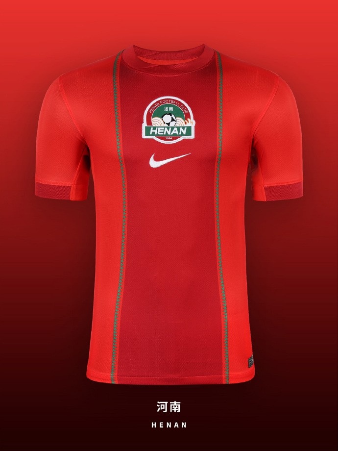 河南队新赛季主场球衣变化较大,将队徽放在了胸口处,两侧辅以垂直条纹,其设计风格在新赛季中超各队主场球衣中非常醒目。