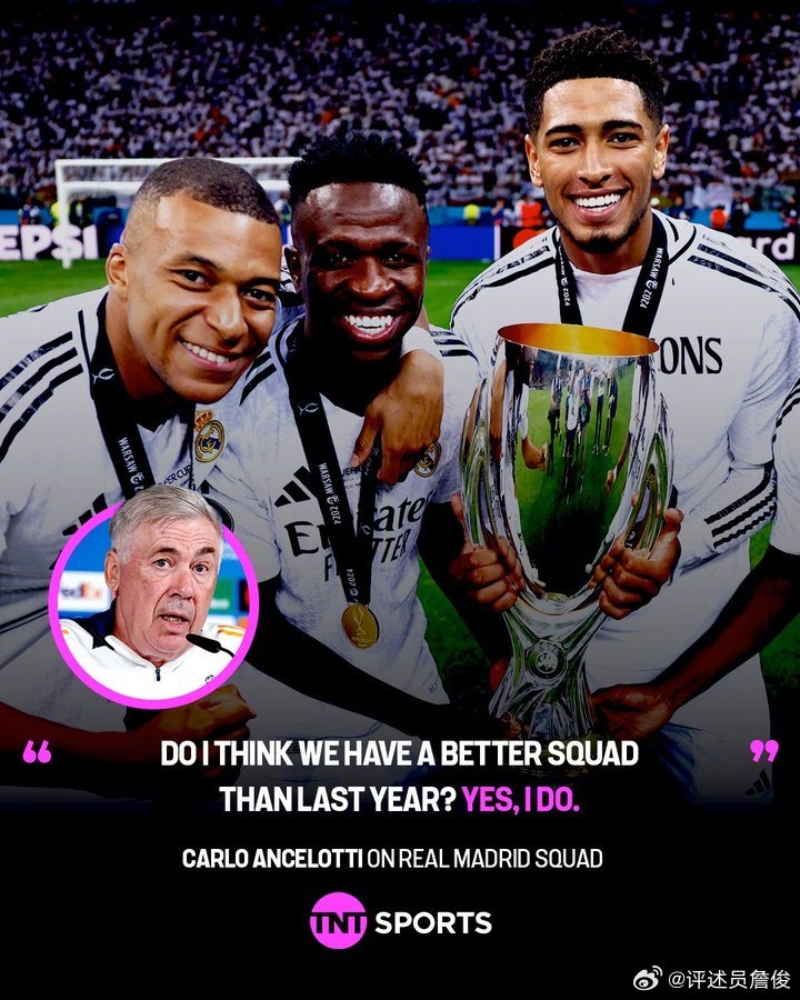 詹俊在社媒写道:安切洛蒂认为这个赛季的阵容实力比上赛季更强。那么有机会实现欧冠卫冕么? 个人觉得比上赛季难度要大。目前伤兵较多,希望情况不会恶化,但主要是:首先自身要解决好姆巴佩加盟后锋线的“兼容”难题;另外西甲联赛的争冠会比上赛季更加激烈,会牵扯更多精力,巴萨马竞的竞争力也大大加强了!