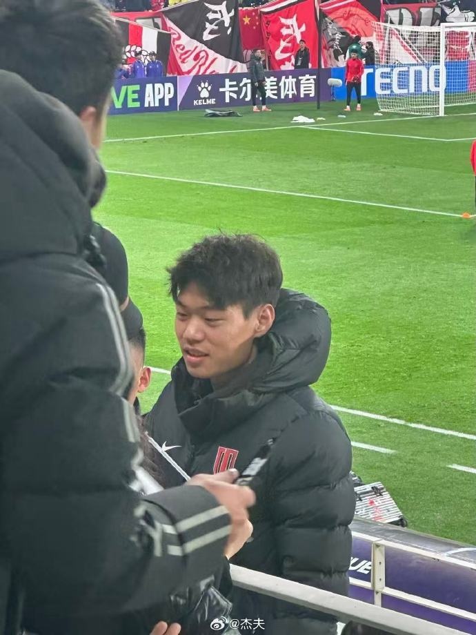 2月11日讯 博主“杰夫”晒照,拜合拉木和贺一然现场观看蓉城亚冠比赛。