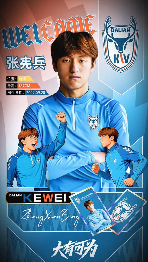 “陷阵冲锋,兵贵神速”,欢迎张宪兵加入大连可为大家庭!期待这位履历丰富的年轻前锋,在足球城继续绽放光芒,与队友们同心聚力、并肩作战,为了共同的梦想,一起大有可为!